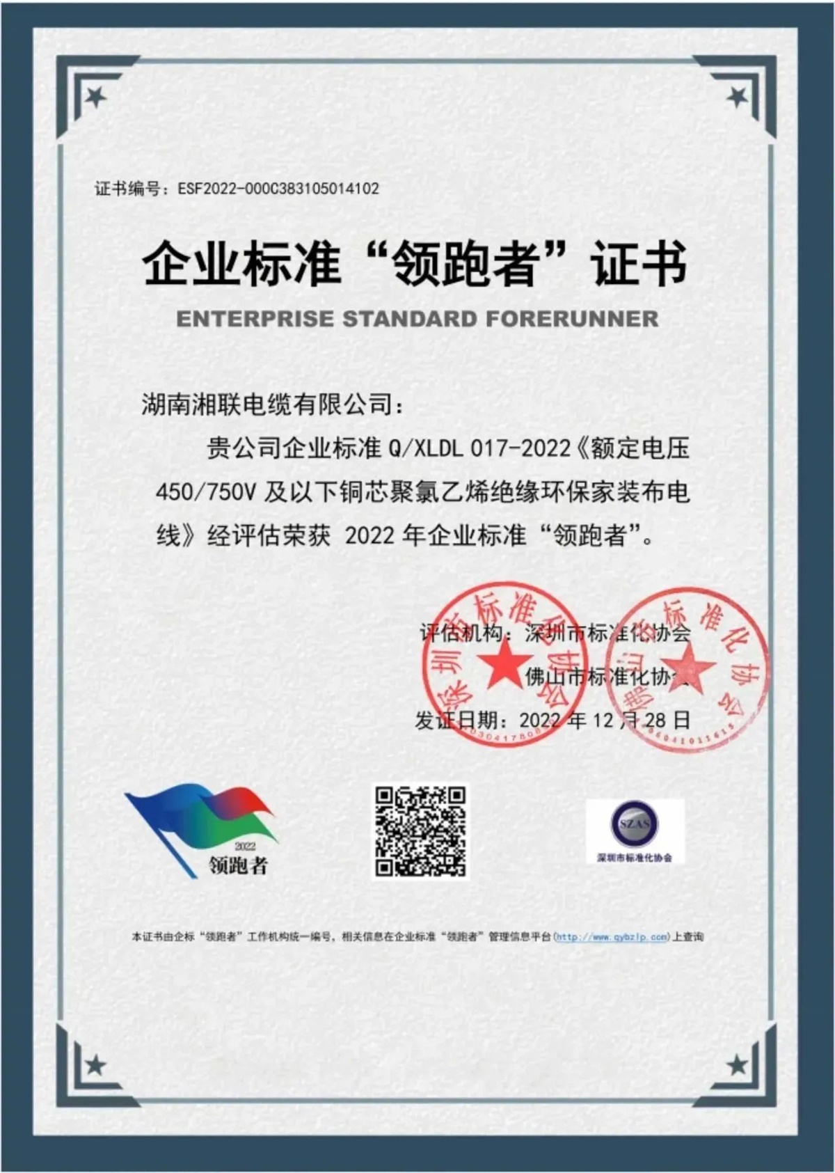 自成立以來,湘聯(lián)電纜以“質量是發(fā)展的基石,是客戶信任的唯一理由”為指導,將產(chǎn)品質量視為企業(yè)生命線,不斷引進國內一流的電線電纜生產(chǎn)和檢測設備,以科學的經(jīng)營管理理念,組建實力雄厚的技術研發(fā)和企業(yè)管理團隊,建立高標準質量管理體系,對生產(chǎn)全過程實現(xiàn)智能化數(shù)字化管理,公司產(chǎn)品先后通過國家強制性產(chǎn)品認證(CCC認證),榮獲企業(yè)標準“領跑者”等榮譽稱號,獲得用戶的廣泛認可。