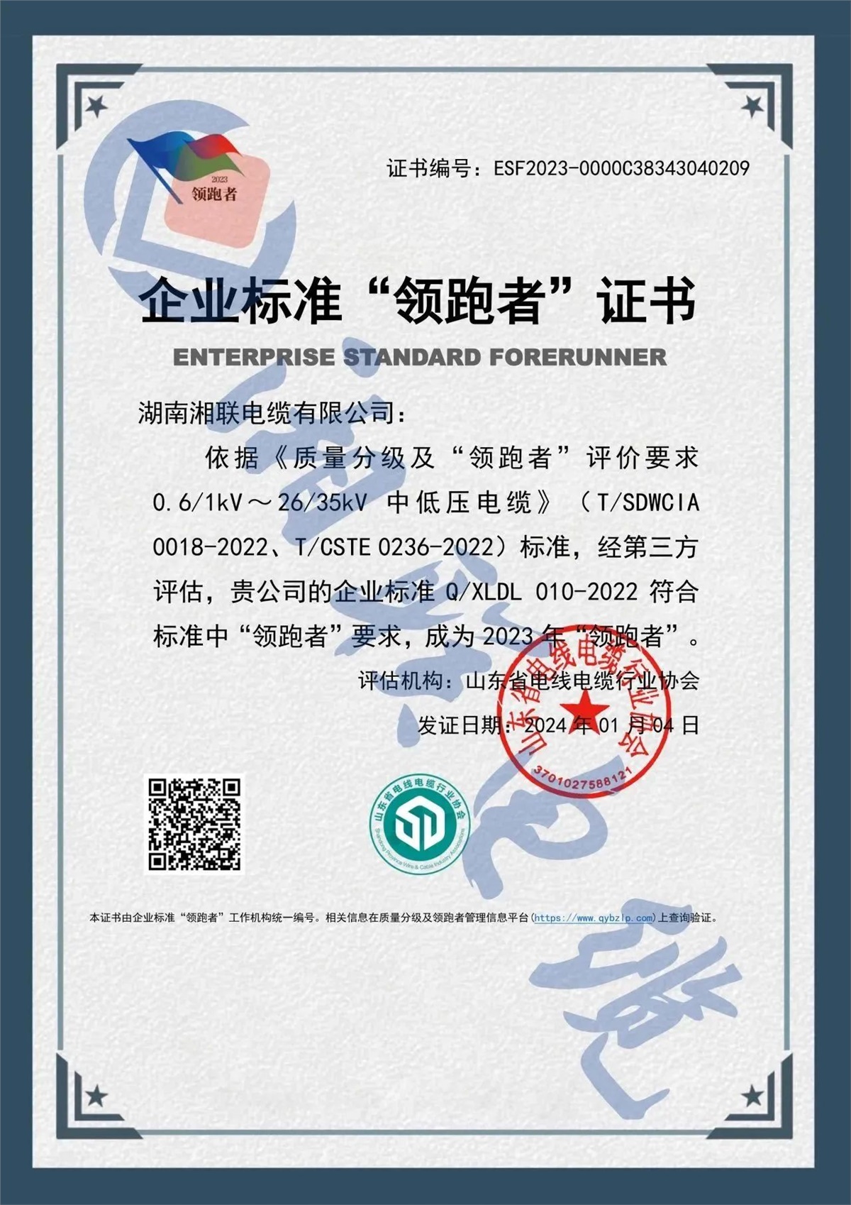 喜報 | 湘聯(lián)電纜獲評企業(yè)標(biāo)準(zhǔn)“領(lǐng)跑者”!