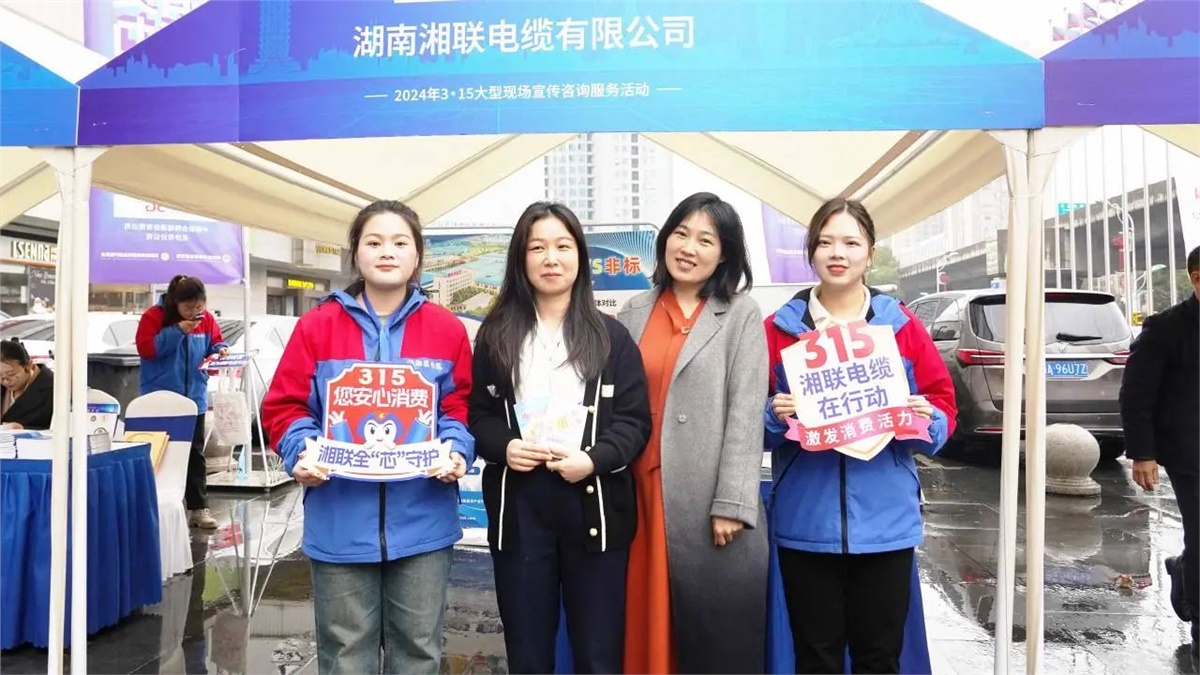 為了進一步提升廣大消費者的權(quán)益保護意識,深入開展“激發(fā)消費活力”消費維權(quán)年主題活動,大力宣傳《消費者權(quán)益保護法》《湖南省消費者權(quán)益保護條例》,在湖南省消費者權(quán)益保護委員會指導下,長沙市芙蓉區(qū)市場監(jiān)督管理局、芙蓉區(qū)消費者委員會聯(lián)合湖南省電線電纜行業(yè)協(xié)會等相關(guān)單位于2024年3月15日上午在長沙市芙蓉區(qū)萬家麗廣場舉行3·15大型現(xiàn)場宣傳咨詢服務(wù)活動。鑒于多年來企業(yè)在消費者權(quán)益保護工作中的積極表現(xiàn),湖南湘聯(lián)電纜有限公司受邀參與此次活動。