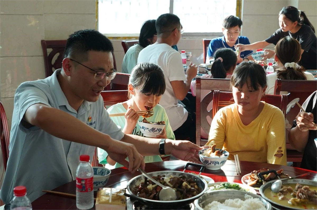 助學(xué)不僅是物質(zhì)上的援助,更重要的是對(duì)孩子們精神上的激勵(lì)與引導(dǎo)。為了拉近與受助學(xué)生的情感距離,在瀏陽(yáng)經(jīng)開區(qū)駐苗兒灘幫扶工作隊(duì)和苗兒灘政府的協(xié)調(diào)幫助下,8月22日傍晚,湘聯(lián)電纜“芯”光助學(xué)基金會(huì)邀請(qǐng)受助孩子和其家長(zhǎng)們來(lái)到苗兒灘政府,通過(guò)一起吃晚餐和開展座談會(huì)的形式,與受助學(xué)生面對(duì)面交流,了解他們的學(xué)習(xí)和生活情況,并鼓勵(lì)學(xué)生們要立志向上,好好學(xué)習(xí),砥礪成才。